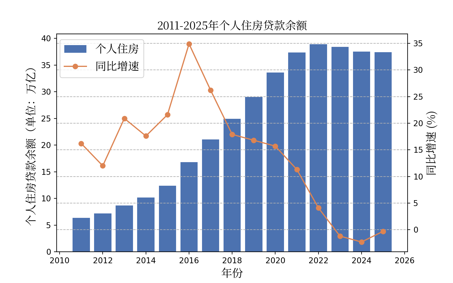 title_(text = "2011-2025 年个人住房贷款余额",